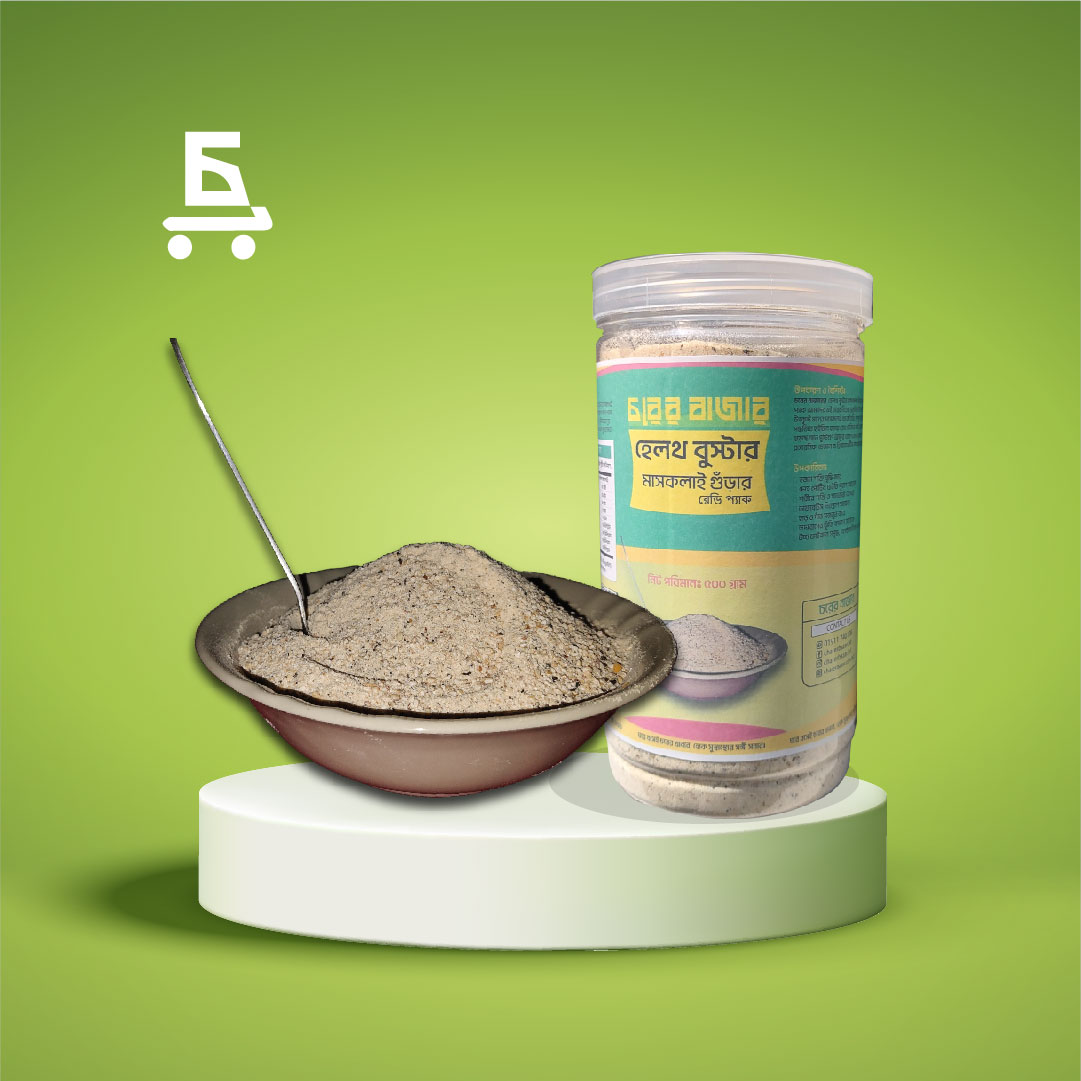 চরের বাজারের হেলথ বুস্টার মাসকলাই গুঁড়ার রেডি প্যাক আমাদের এই চরের বিশুদ্ধ প্রকৃতিতে উৎপাদিত উৎকৃষ্ট মানের মাসকলাই থেকে তৈরি। সম্পূর্ণ প্রাকৃতিক পদ্ধতিতে হাইজিন বজায় রেখে ঢেঁকিতে ছেঁটে গুড়া করা হয়েছে যাতে পুষ্টিগুণ অক্ষুণ্ণ থাকে। কোনো প্রকার রাসায়নিক, ভেজাল বা প্রিজারভেটিভ ব্যবহার করা হয়নি।